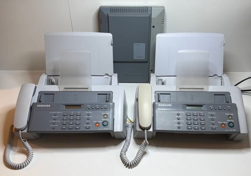 I have acquired two identical Samsung SF-360 fax machines. The machines communicate via my Homevox Universal 2-6F telephone exchange. I replaced the M40 ink cartridges to get a fully operational demonstration setup.