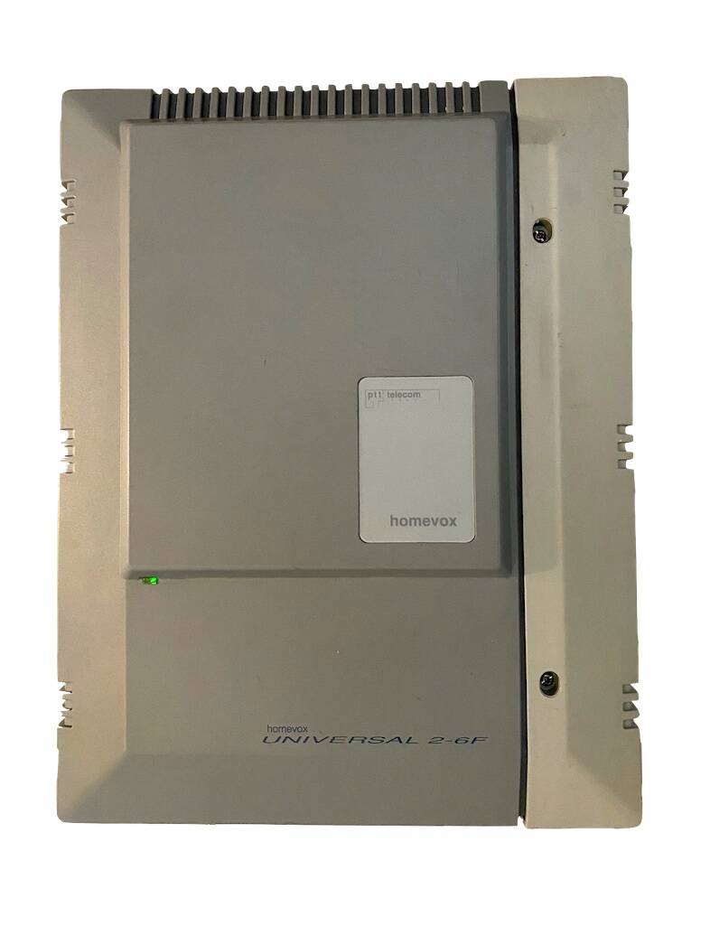 The Homevox Universal of Dutch PTT Telecom is a modern digital telephone exchange for homes and small businesses. My version is a 2-6F. This means that it has 6 internal lines and 2 external lines. A wide range of functions can be programmed. The Homevox can be used for pulse dialling and tone dialling, but it does not convert pulse to tone.